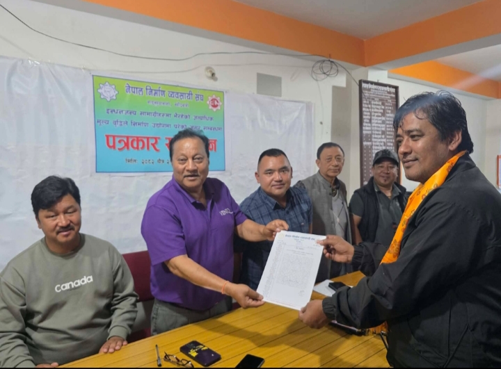उनले सरकारले कहिले कालाे सुचिमा राख्ने, समयमै काम सक्न अनावश्यक धम्की र दवाब श्रृजना गर्ने जस्ता कामहरु गरिरहेकाेप्रति दुखेसाे गर्दै निर्माण ब्यवसायीका साझा समस्या प्रचार प्रसारका लागि पत्रकारहरुलाई आग्रह गर्दै पत्रकार महासंघ अध्यक्ष कृष्णराज शाक्यलाई बिज्ञप्ति हस्तान्तरण गरेका थिए । ।